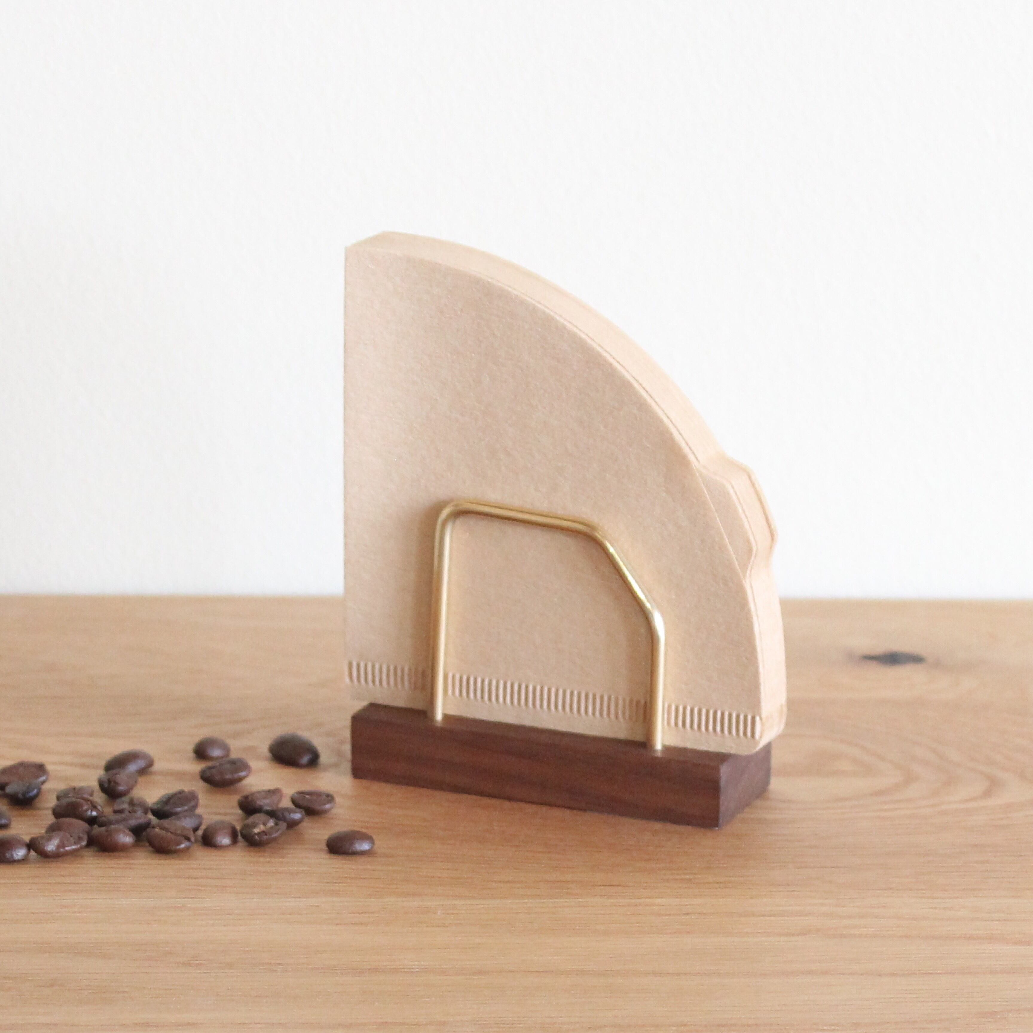コーヒーフィルタースタンド【 ウォールナット × 真鍮 】コーヒーペーパーフィルター 木製 真鍮 キッチン収納 おしゃれ スタイリッシュ シンプル